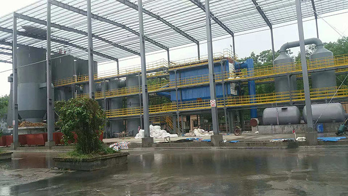 Pyrolysis furnace is a vertical cylinder, consisting of a drying section, a pyrolysis section, a burnout section and a burning section. The drying, pyrolysis, and burning sections are lined with corrosion-resistant, high temperature-resistant, and high-strength refractory materials. These refractories have excellent technical properties, which can prolong the service life of the furnace body, reduce the maintenance requirements for refractory materials, and lower the operating cost. The furnace body is constructed with a water jacket and lined with firebrick structure. The lined firebrick improves the temperature within the pyrolysis furnace while accelerating the speed of pyrolysis process to effectively prevent any deviation in furnace deviation. The function of water jacket is to expedite the cooling time for one furnace so that it can quickly proceed to loading work after complete burning out, ensuring smooth transition between the two furnaces’ operation while maintaining sufficient gas supply in the secondary combustion chamber to sustain desired temperature;